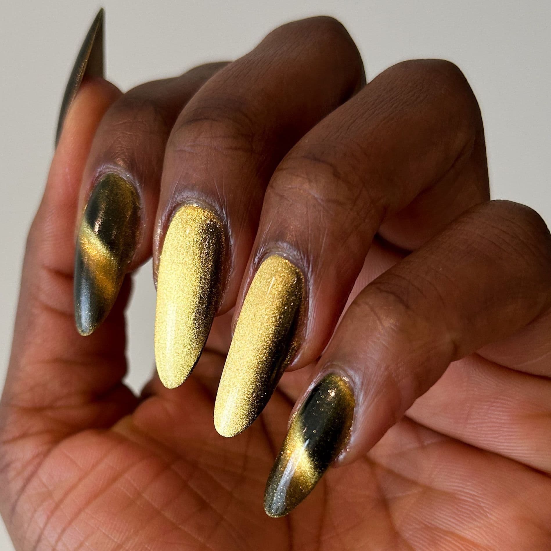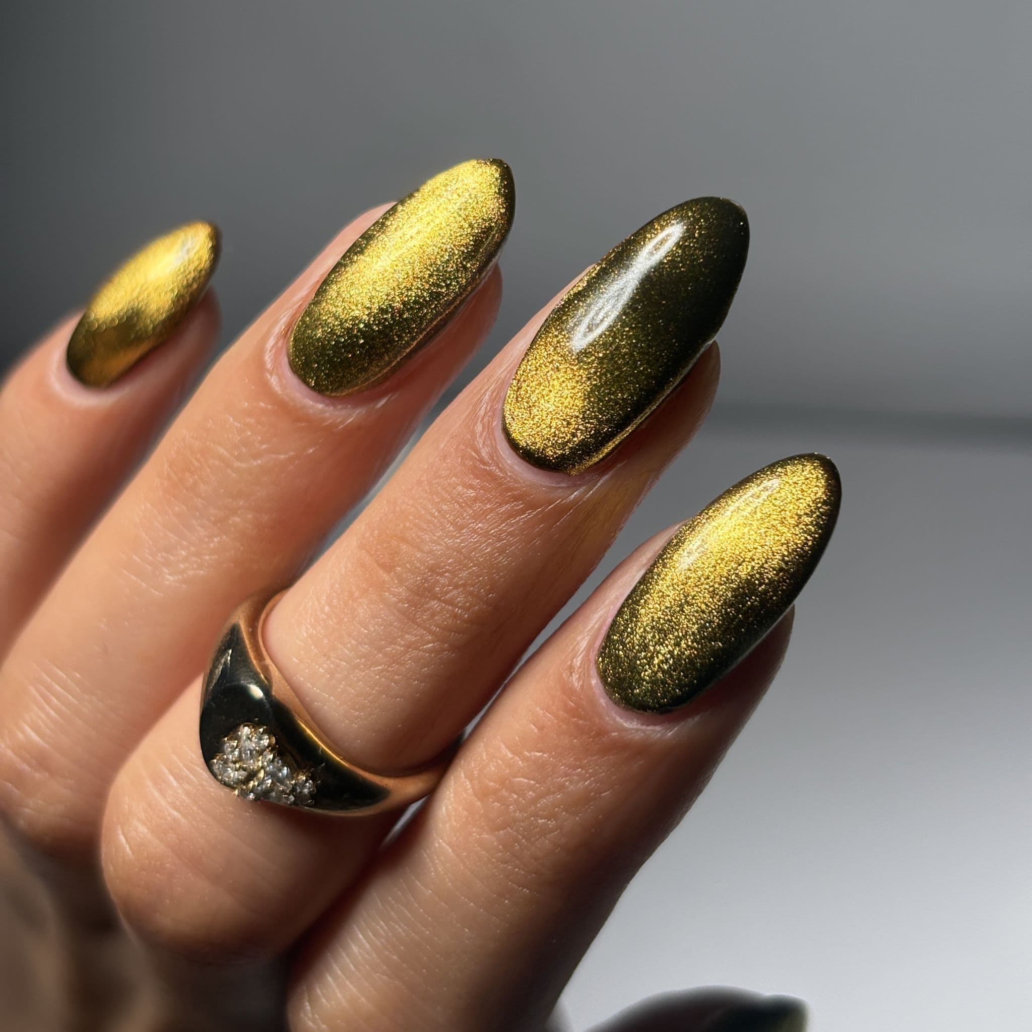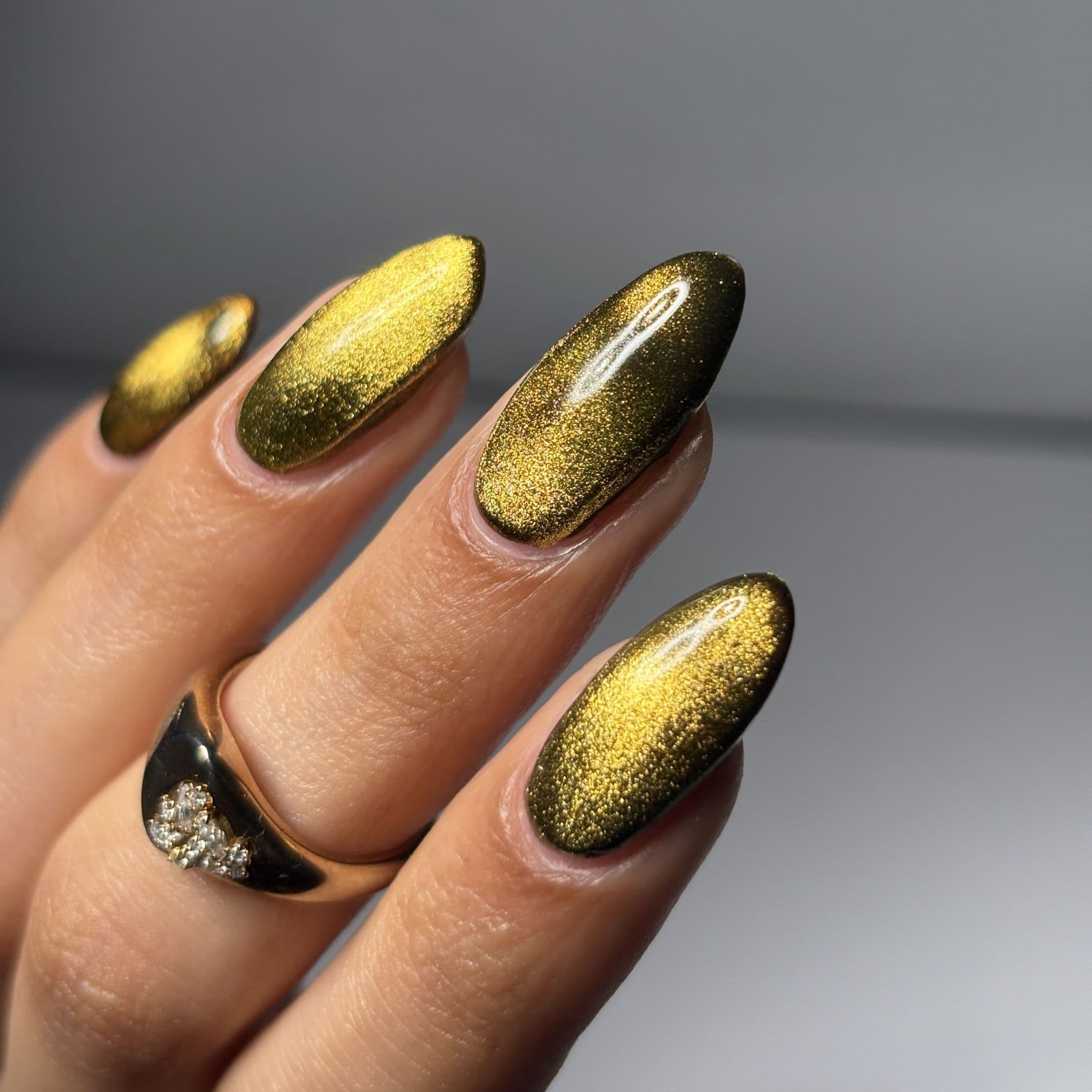 Illuminate your manicure with Candlelight, a luxurious gold magnetic nail polish inspired by the warm, cosy glow of Christmas candles. This festive shade captures the soft shimmer of candlelit nights, creating a radiant light effect on your nails with every movement.