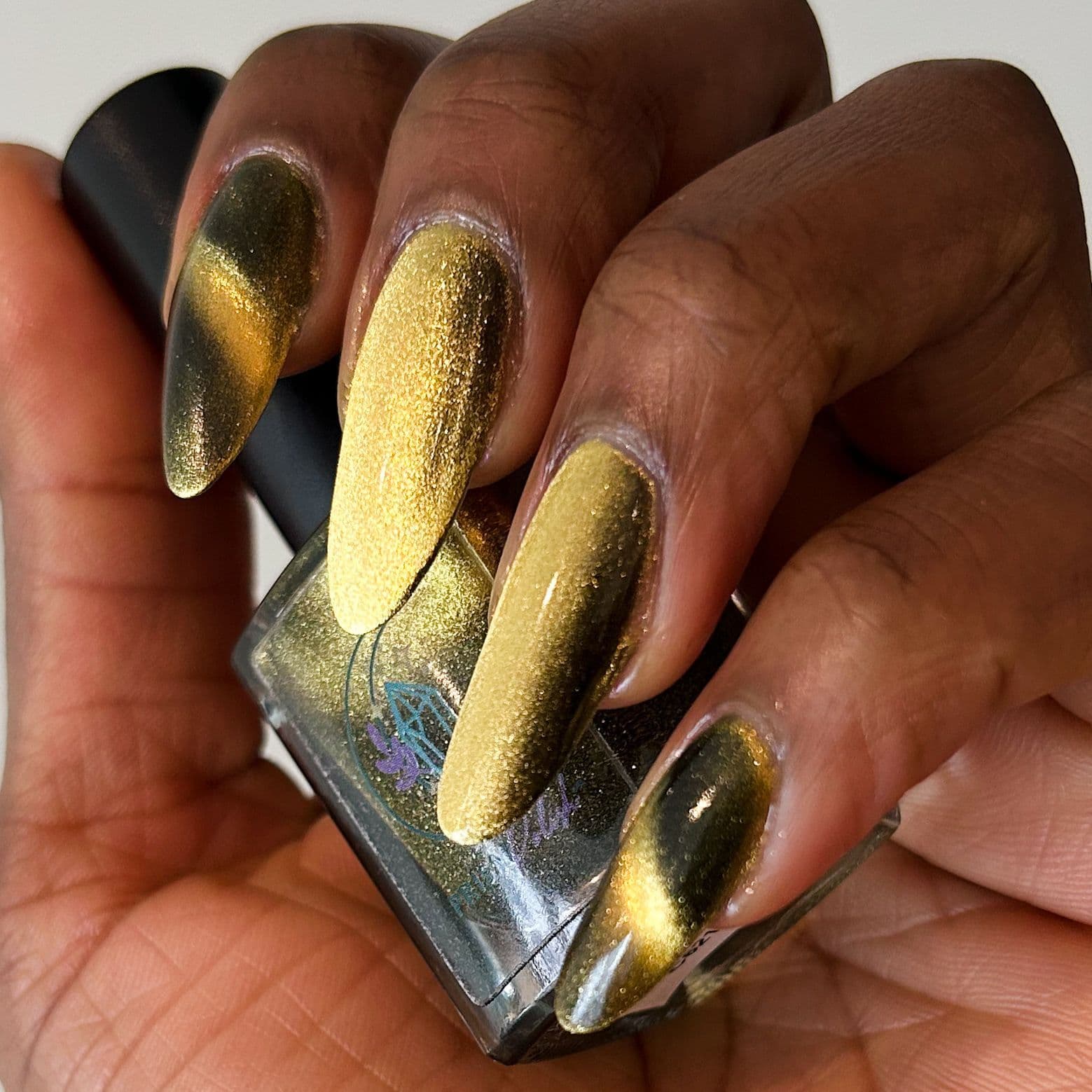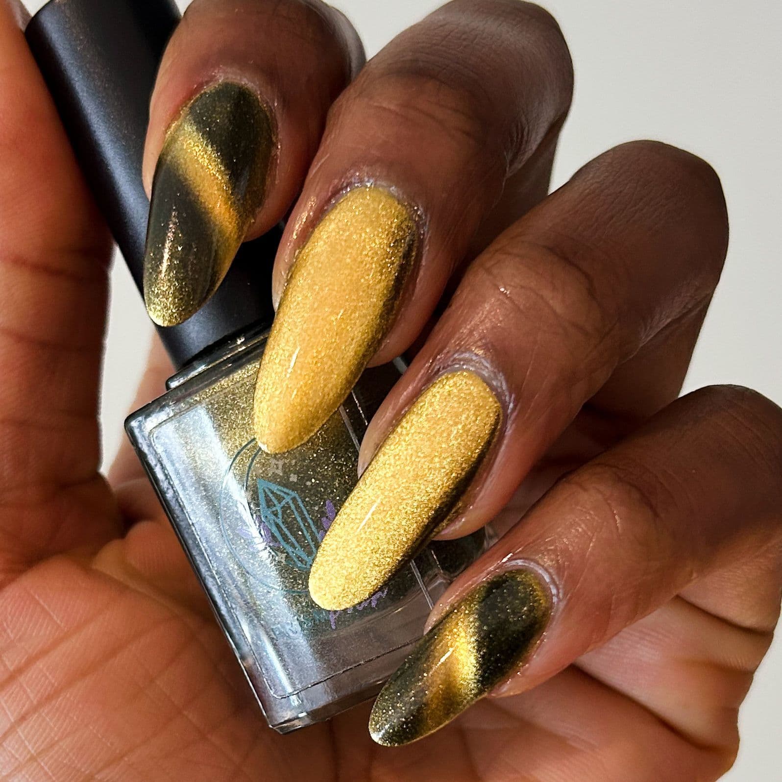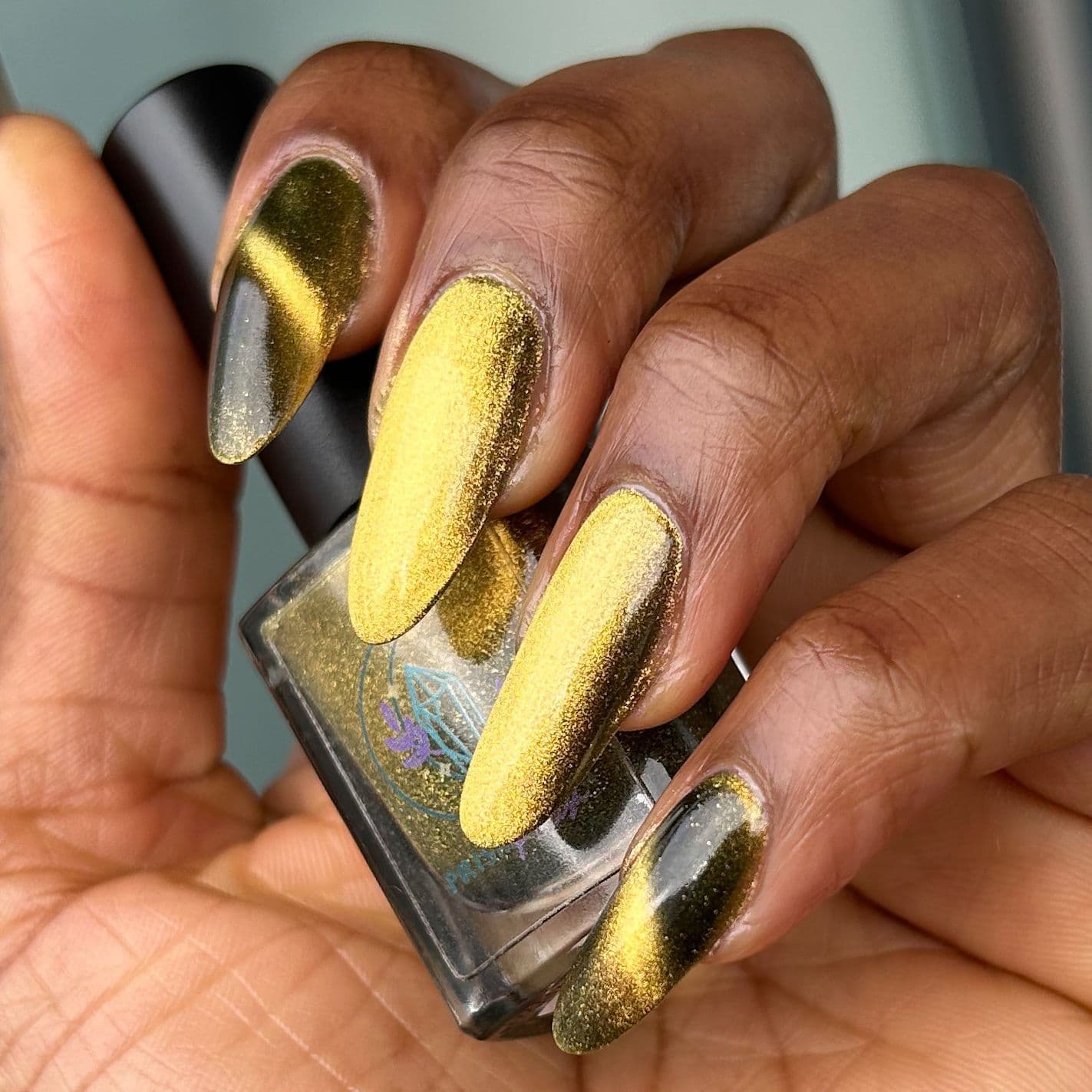 Illuminate your manicure with Candlelight, a luxurious gold magnetic nail polish inspired by the warm, cosy glow of Christmas candles. This festive shade captures the soft shimmer of candlelit nights, creating a radiant light effect on your nails with every movement.