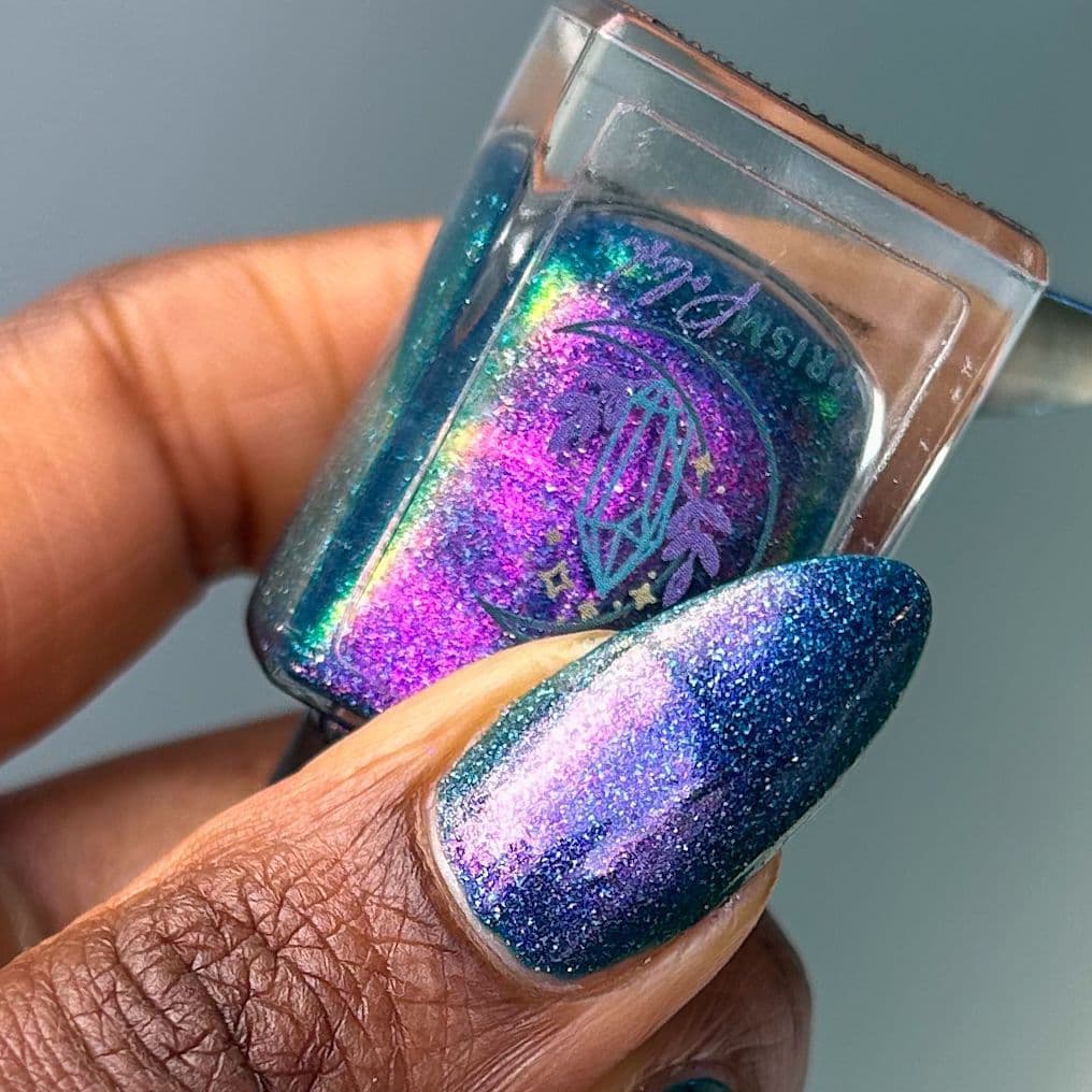 Wrap your nails in the magic of Christmas Night, a deep navy holo flakie nail polish inspired by the warmth and wonder of cosy Christmas evenings, filled with bright pink/gold/green shifting shimmer. This enchanting shade captures the feeling of starlit winter skies, glowing fireplaces, and festive sparkle.
