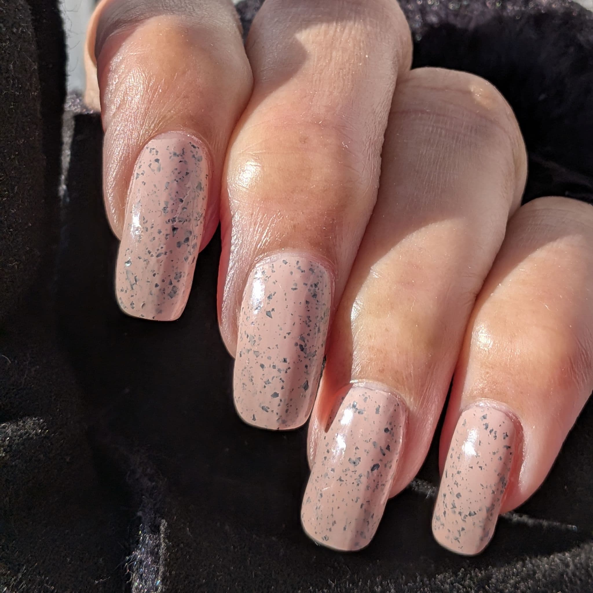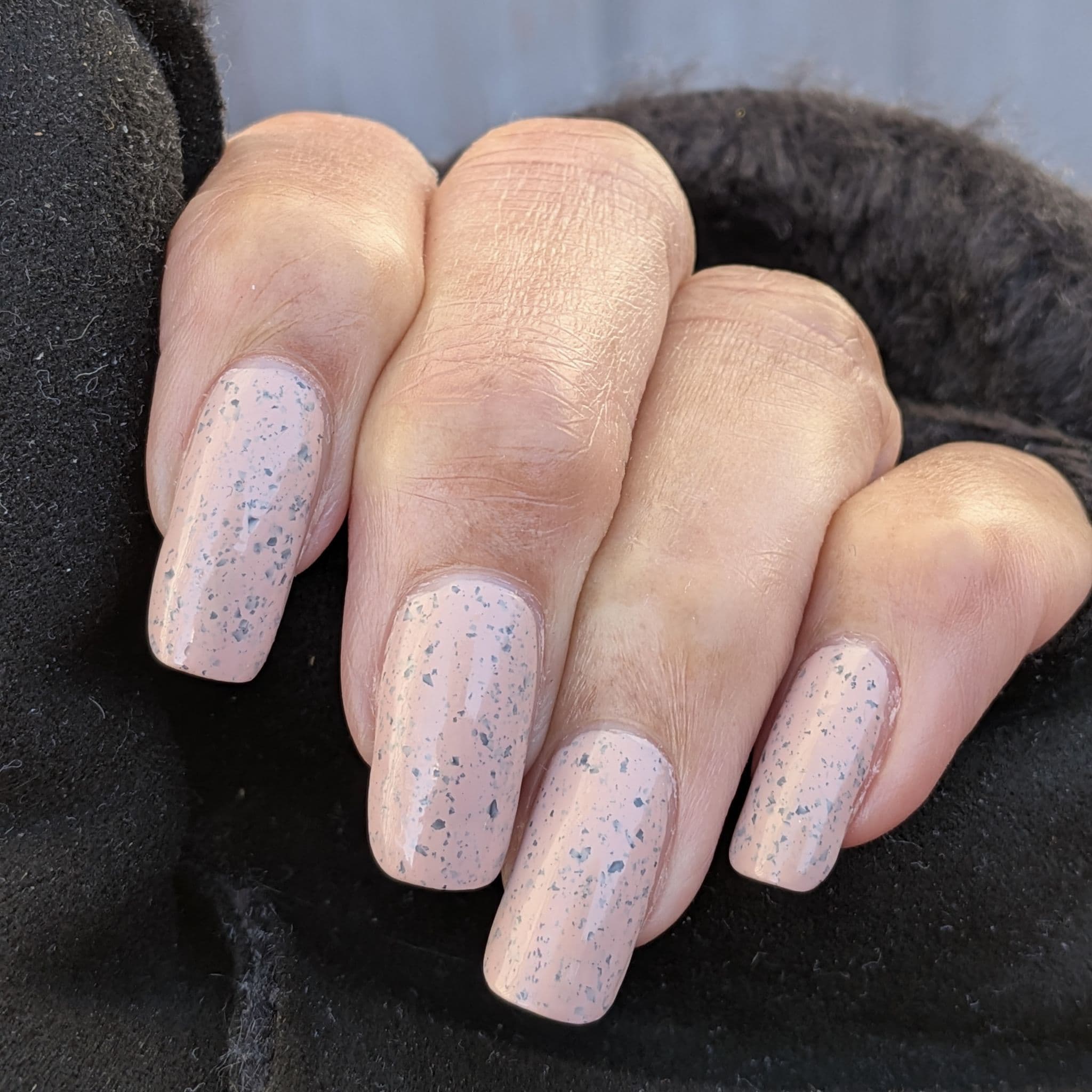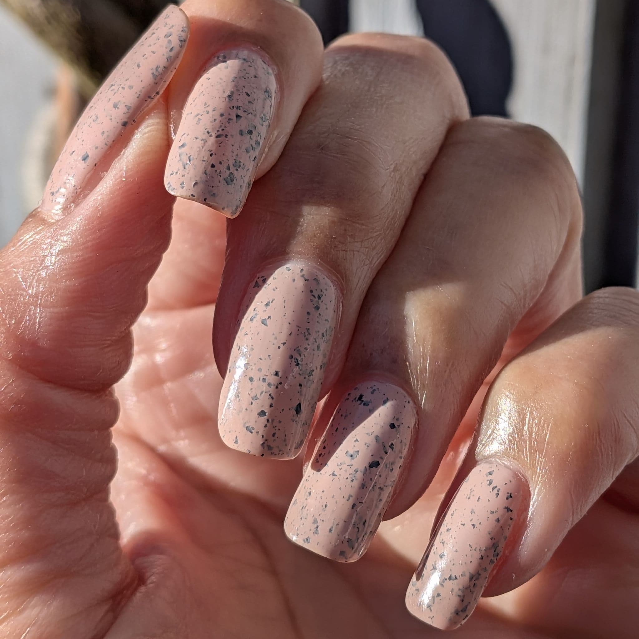 Meet Driftwood, a beautifully muted bleached dusty rose crelly scattered with delicate black flakies for a soft, speckled effect. Inspired by weathered coastal textures and natural tones, this unique shade combines understated elegance with modern edge.