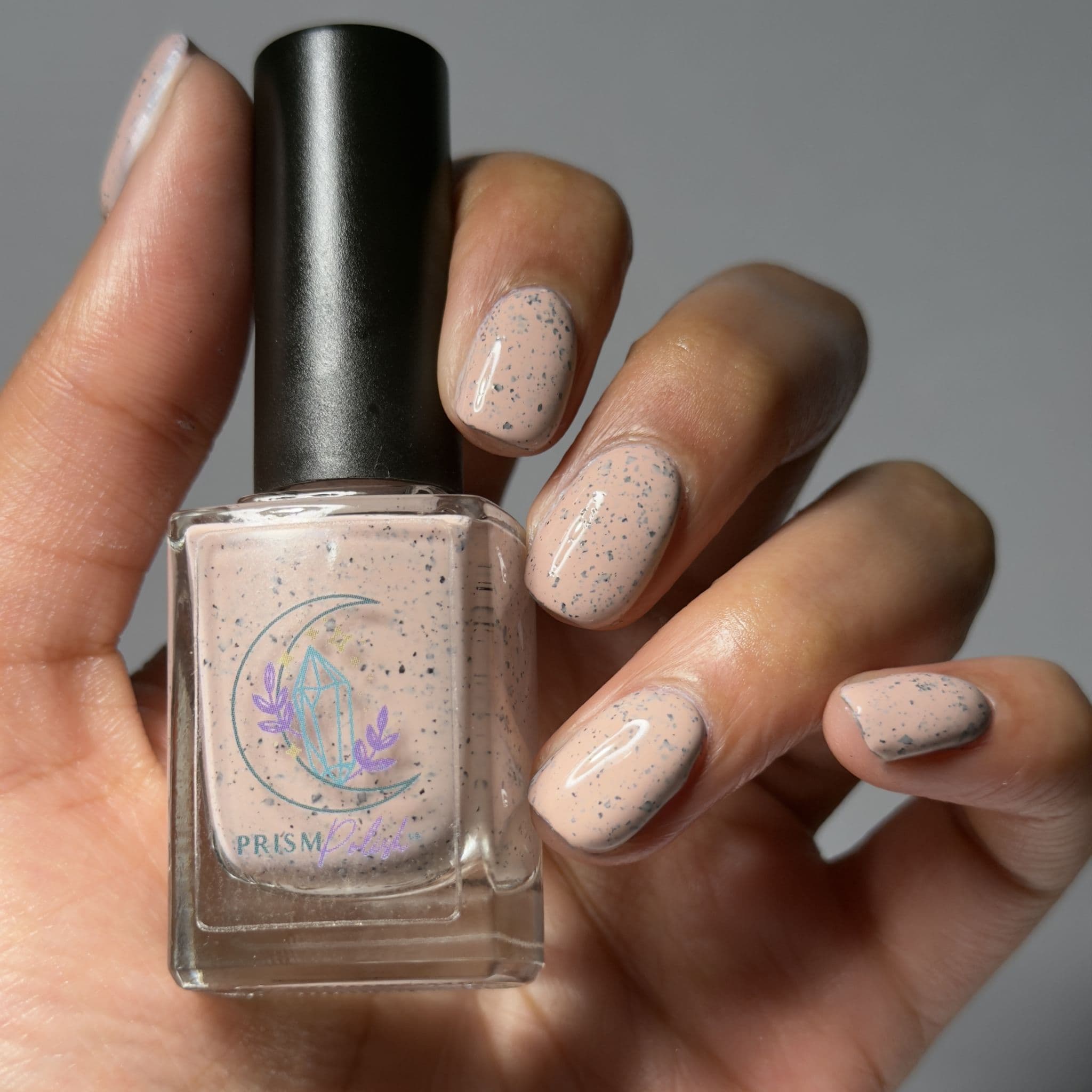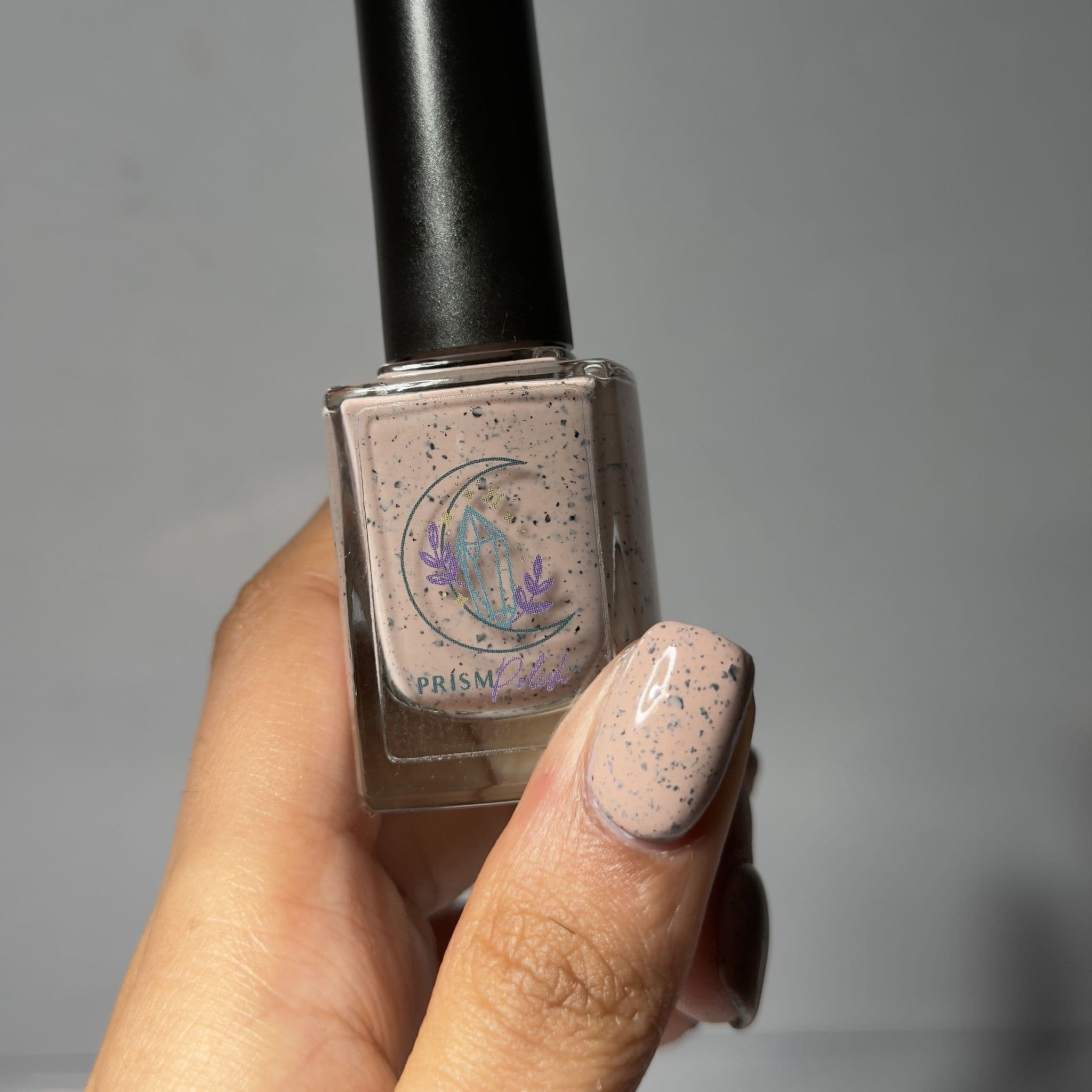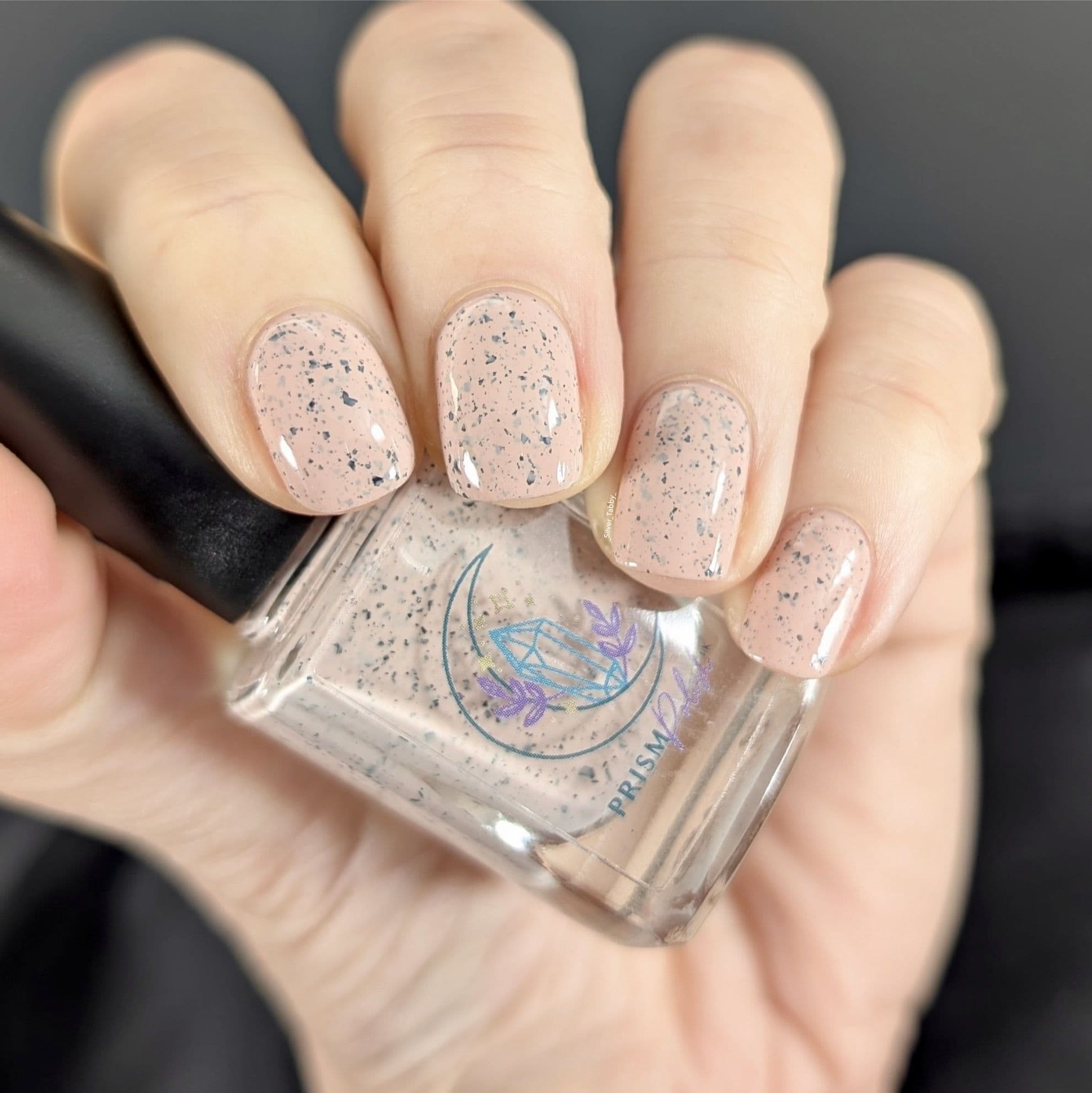 Meet Driftwood, a beautifully muted bleached dusty rose crelly scattered with delicate black flakies for a soft, speckled effect. Inspired by weathered coastal textures and natural tones, this unique shade combines understated elegance with modern edge.