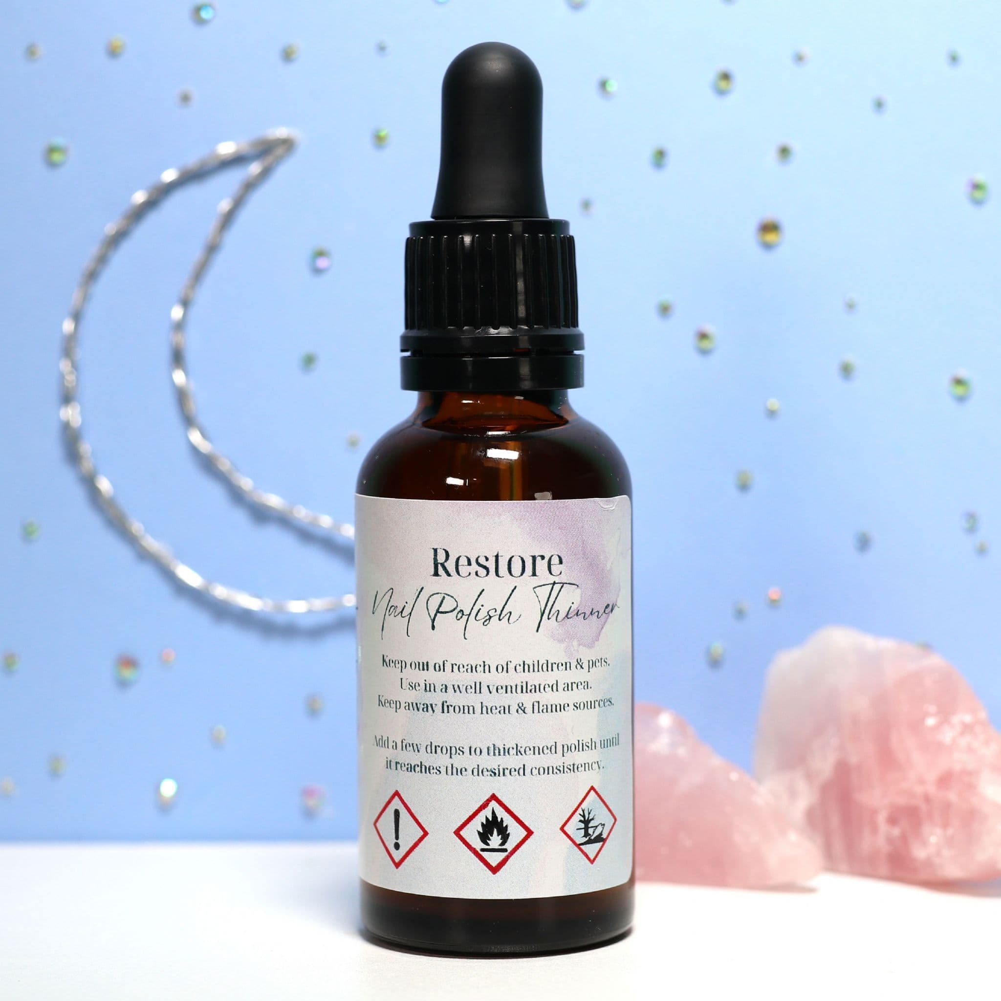 Restore is a 10-free nail polish thinner to revive your thickened polishes giving them a smoother consistency without ruining their formulas. Now supplied in a 30ml glass dropper bottle.