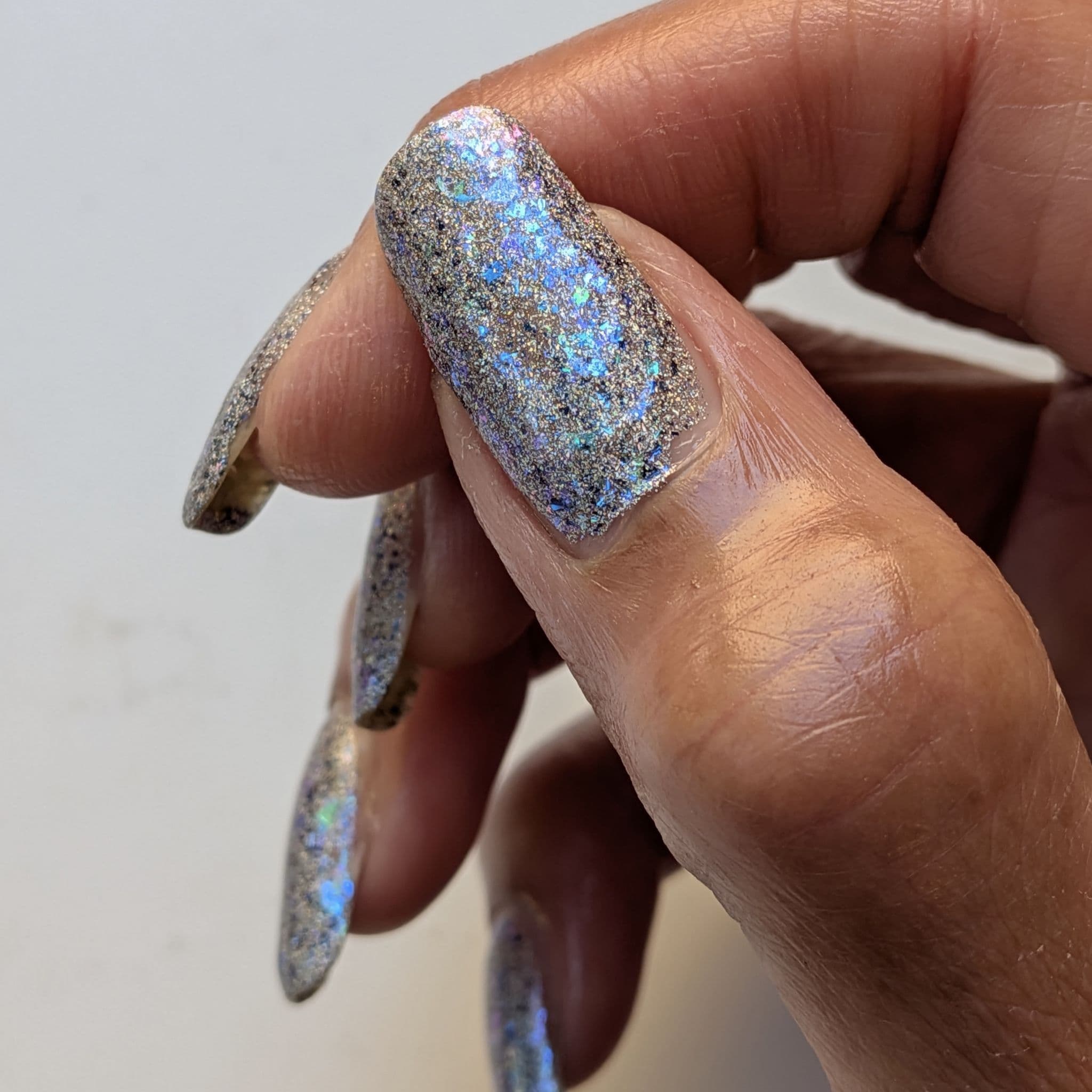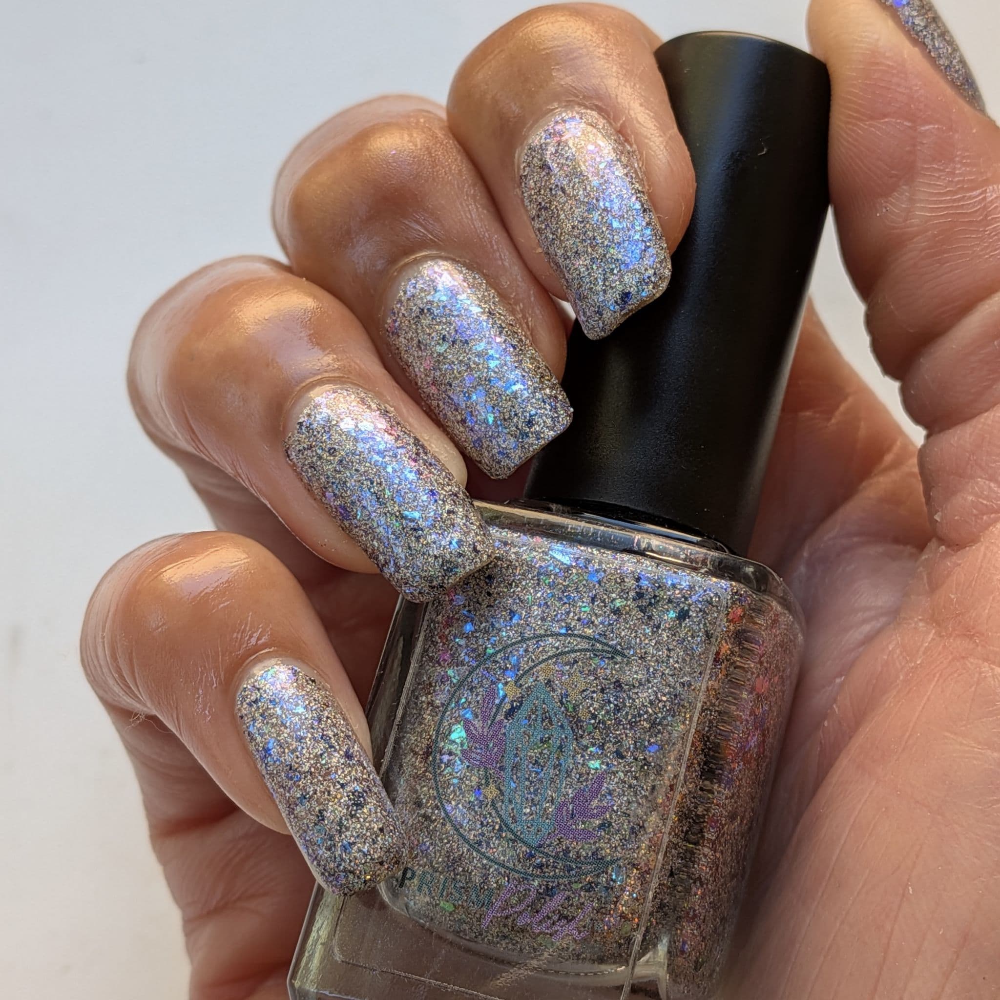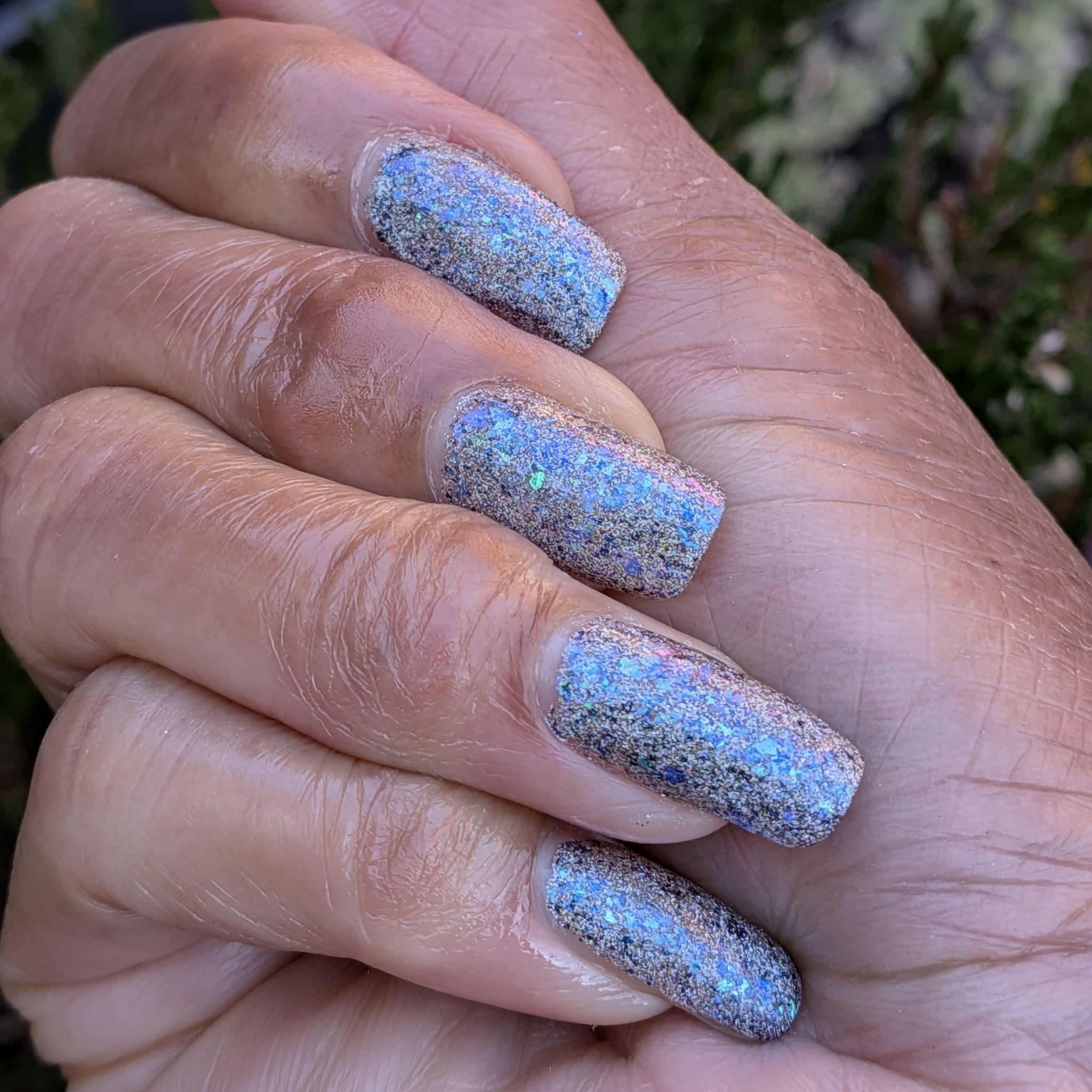 Step into the shimmer of the supernatural with TITSOAK, a Twilight-inspired holographic shade that sparkles like vampire skin in sunlight. Jam-packed with green/blue/violet shifting flakies, this polish is a moody, ethereal dream — perfect for fans of fantasy, romance, and unforgettable sparkle.